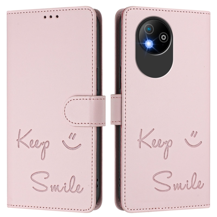 Funda de Cuero Rfid con Relieve Sonriente para ZTE Blade A35 Lite (Rosa)