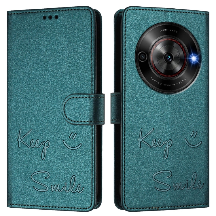 Funda de Cuero Rfid con Relieve Sonriente para ZTE Blade A75 5G (Verde Pavo Real)