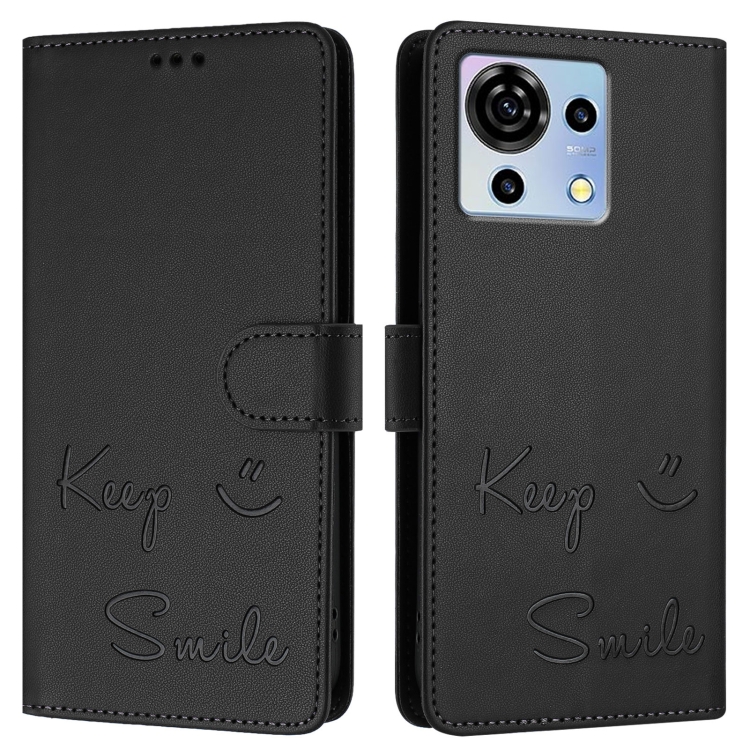 Funda de Cuero Rfid con Relieve Sonriente para ZTE Blade V50 Vita (Negra)