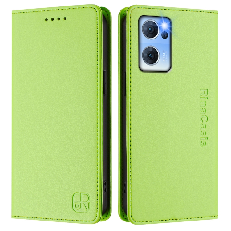 Funda de Cuero Rfid con Doble Pliegue y Succión Magnética para Oppo Reno7 5G Global / Find X5 Lite Rc01 (Verde Hierba)