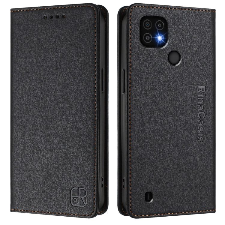 Funda de Cuero Rfid con Succión Magnética y Doble Pliegue para Realme C20 / C11 2021 / C21 Rc01 (Negro)
