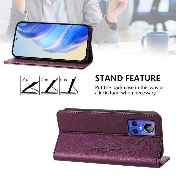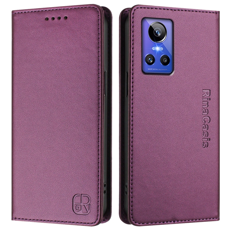 Funda de Cuero Rfid con Succión Magnética y Doble Pliegue para Realme Gt Neo 3 Rc01 (Violeta)