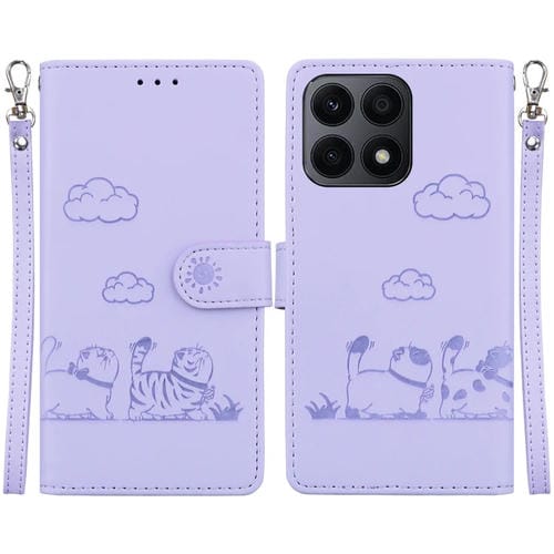 Funda de Cuero Rfid para Honor X8A con Diseño de Gatos (Morado)