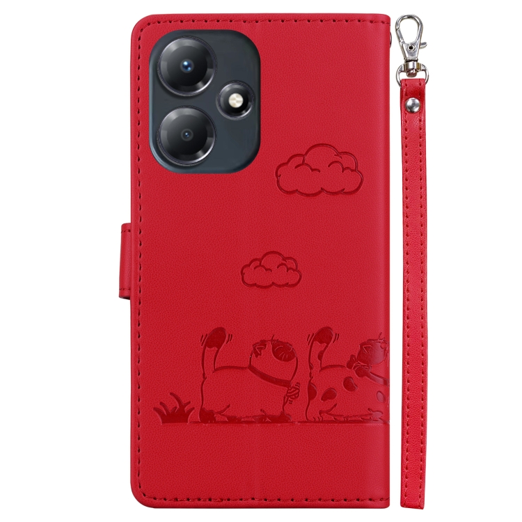 Funda de Cuero Rfid para Teléfono Infinix Hot 30 Play con Lindos Gatos (Rojo)