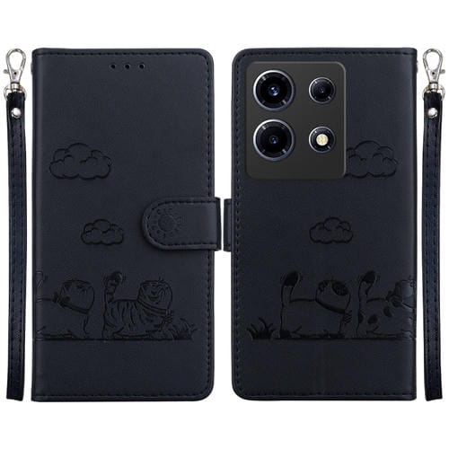 Funda de Cuero Rfid para Teléfono Infinix Note 30 Vip con Diseño de Gatos (Negro)