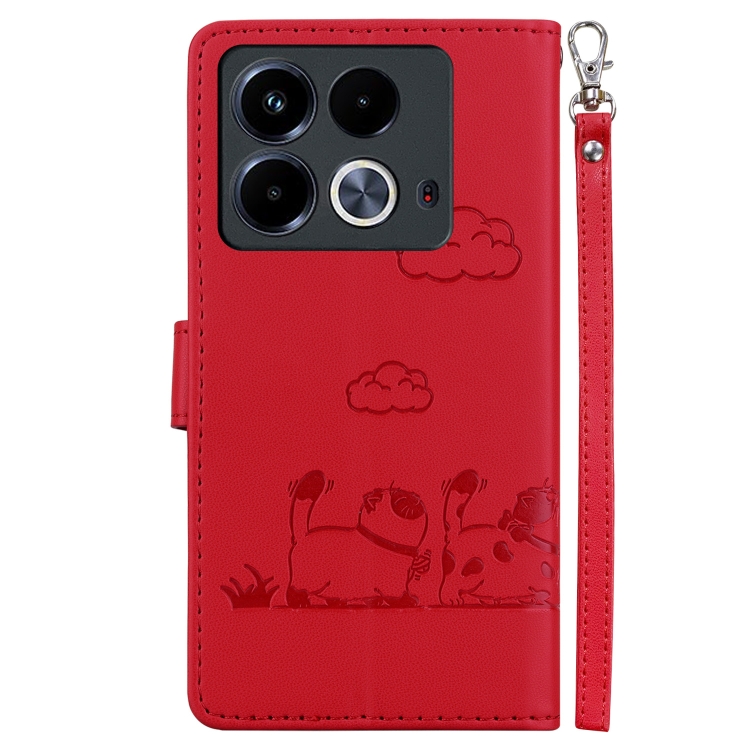 Funda de Cuero Rfid para Teléfono Infinix Note 40 4G con Diseño de Gatos (Rojo)