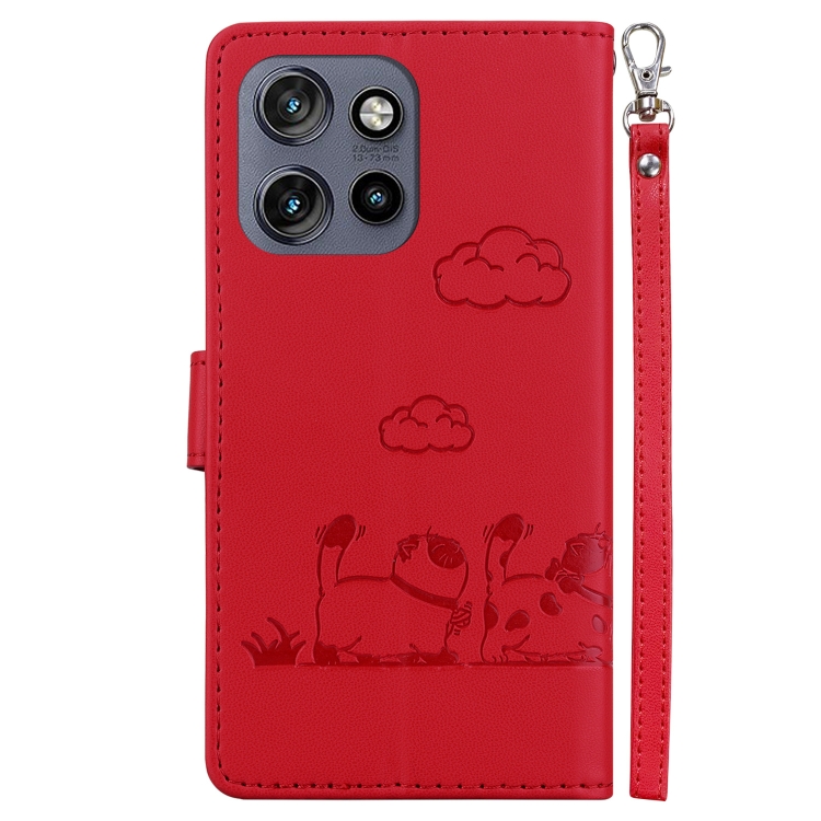 Funda de Cuero RFID para Motorola Edge 50 Neo 5G con Diseño de Gatos (Rojo)