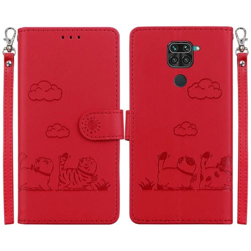 Funda de Cuero Rfid con Diseño de Gatos para Redmi Note 9/10X 4G (Roja)