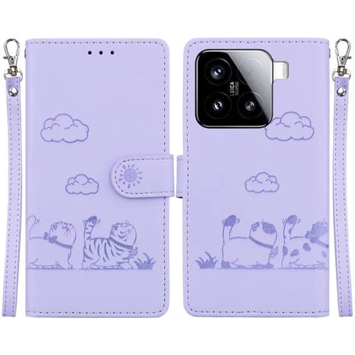 Funda De Cuero Rfid Con Diseño De Gatos Para Xiaomi 15 (Morada)