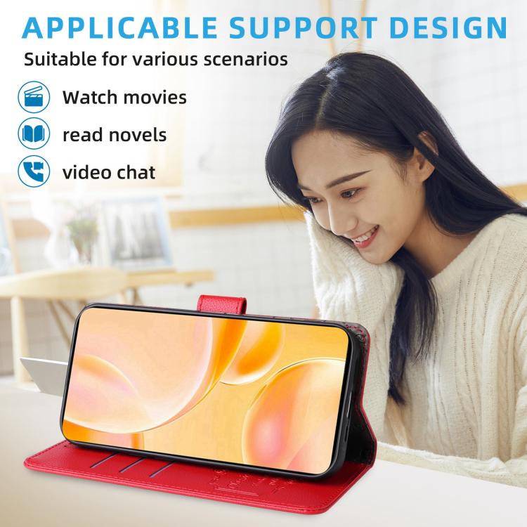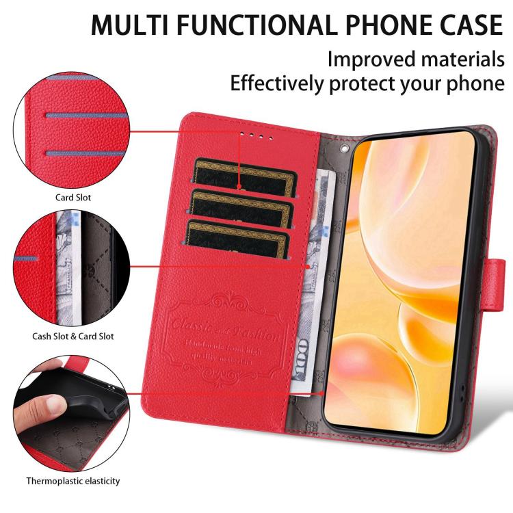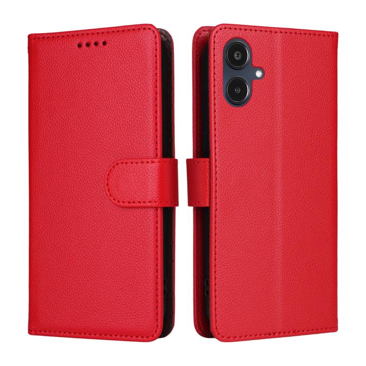 Funda de cuero tipo billetera con bloqueo RFID para Samsung Galaxy A25e, textura Litchi, para 3 tarjetas (roja)