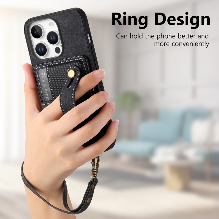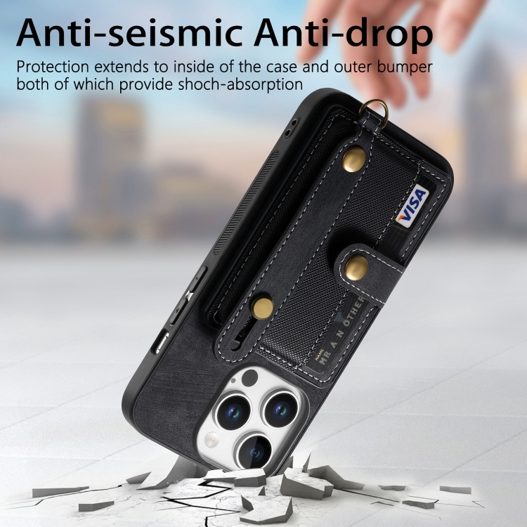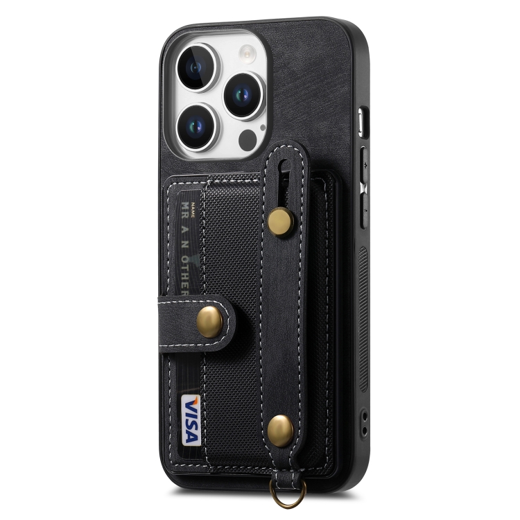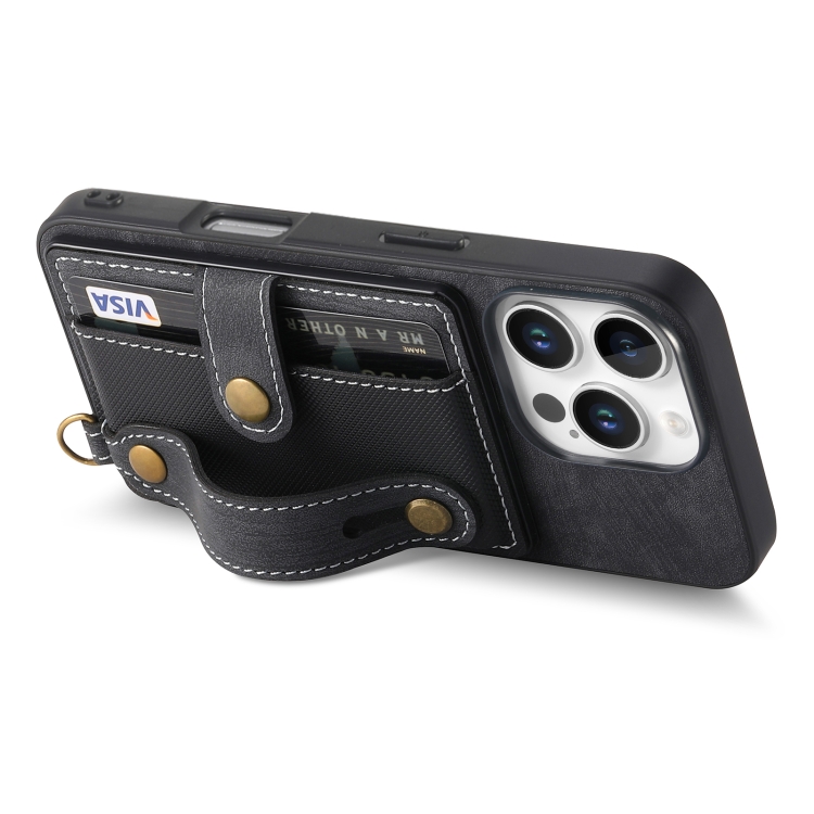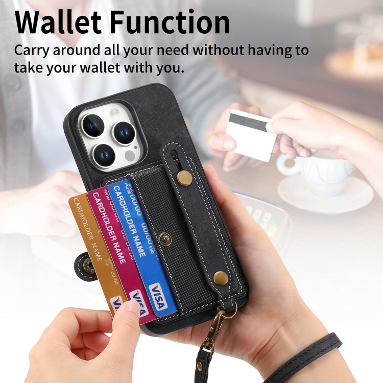 Funda de Cuero Tipo Billetera con Correa Cruzada para iPhone 16 Pro (Negra)