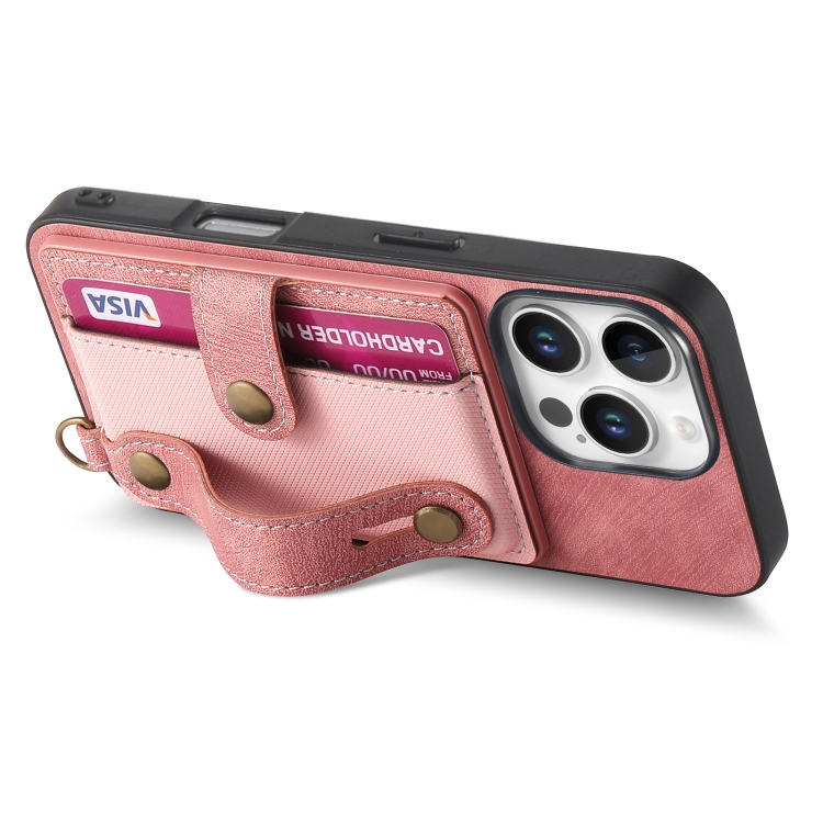 Funda de Cuero Tipo Billetera con Correa Cruzada para iPhone 16 Pro (Rosa)