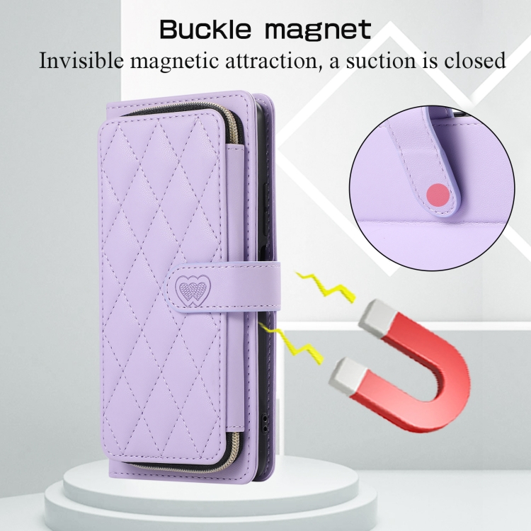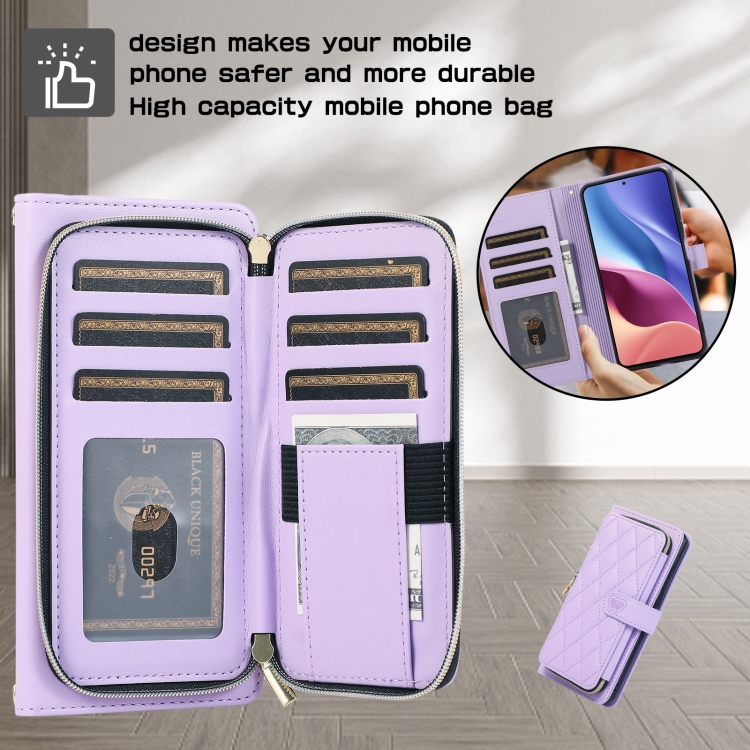 Funda de Cuero Tipo Billetera con Cremallera Completa y Diseño Rombal para Redmi K40 (Morado)