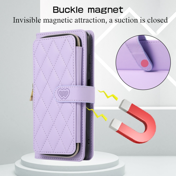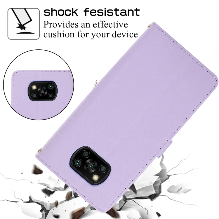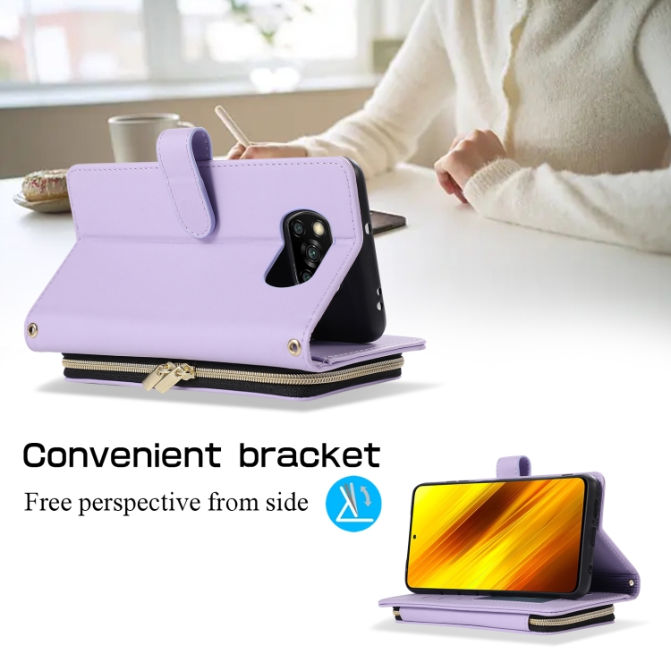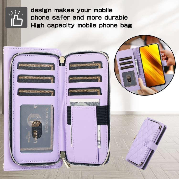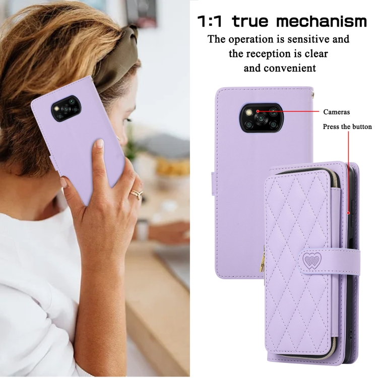 Funda de Cuero Tipo Billetera con Cremallera Completa y Diseño Rombal para Xiaomi Poco X3 Nfc (Morado)