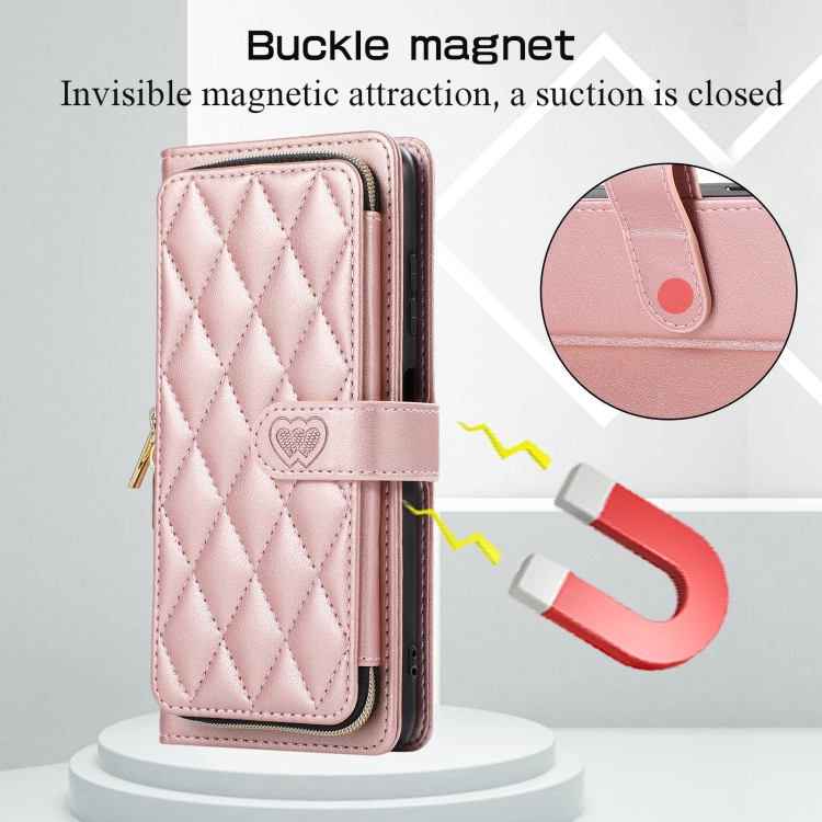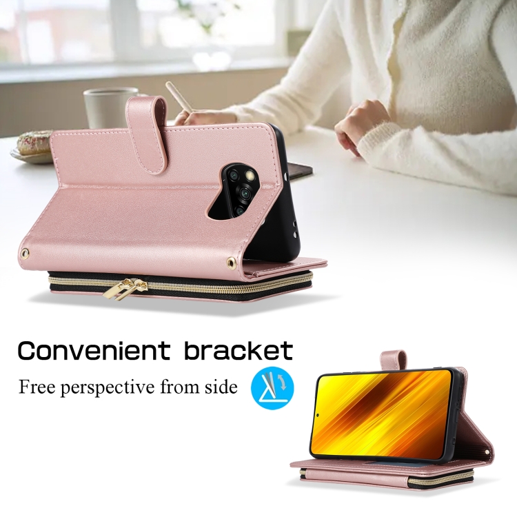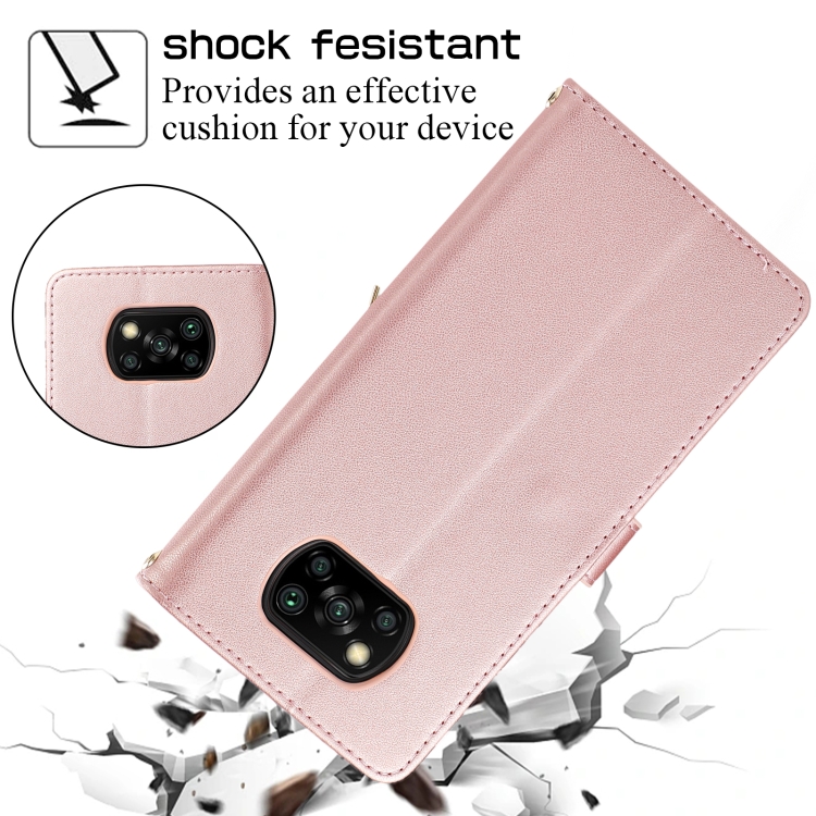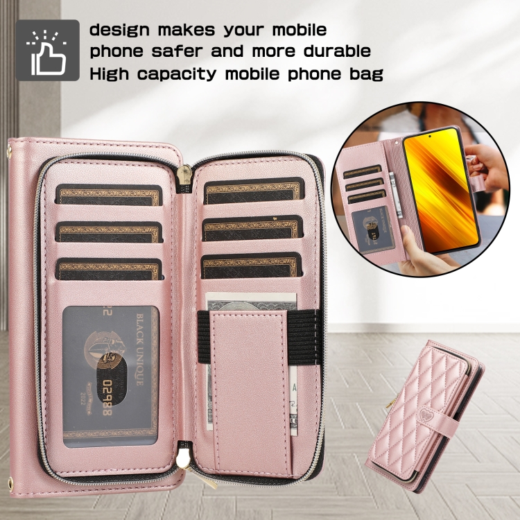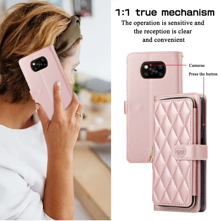 Funda de Cuero Tipo Billetera con Cremallera Completa y Diseño Rombal para Xiaomi Poco X3 Nfc (Oro Rosa)