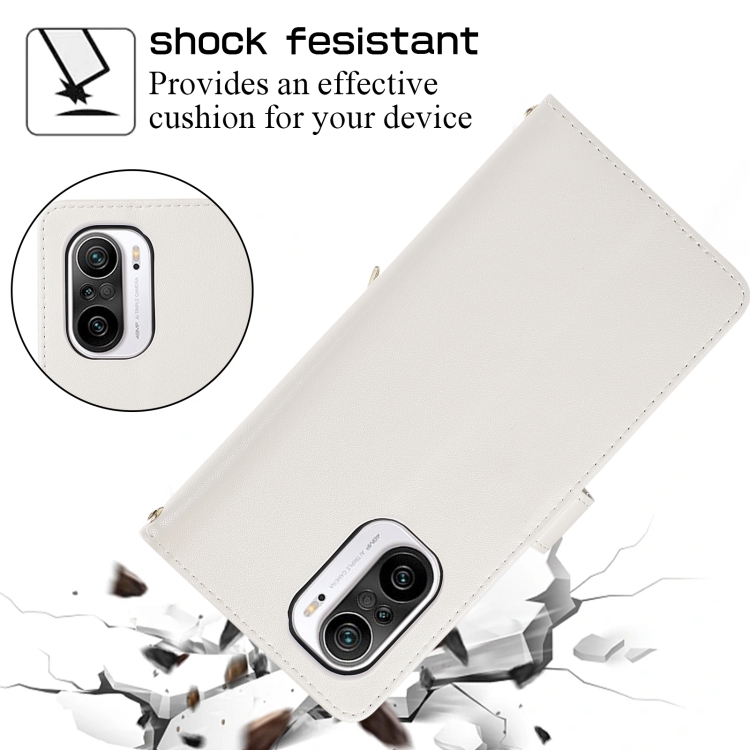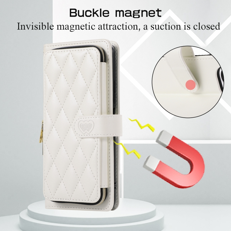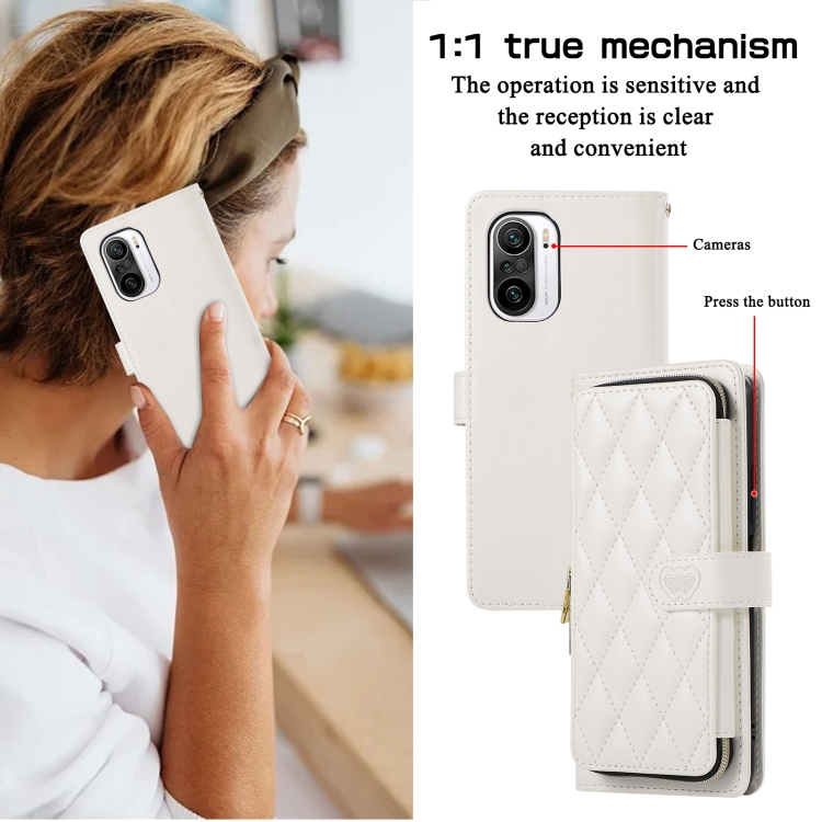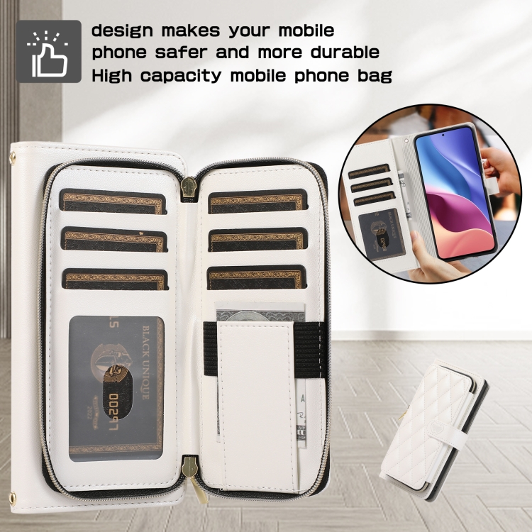 Funda de Cuero Tipo Billetera con Cremallera Completa y Diseño Romboidal para Redmi K40 (Blanca)