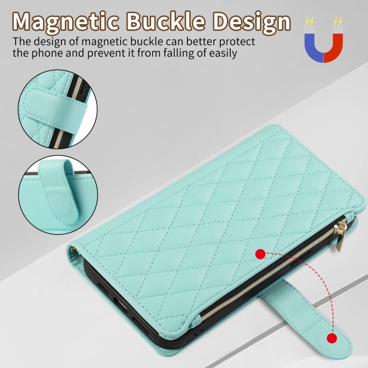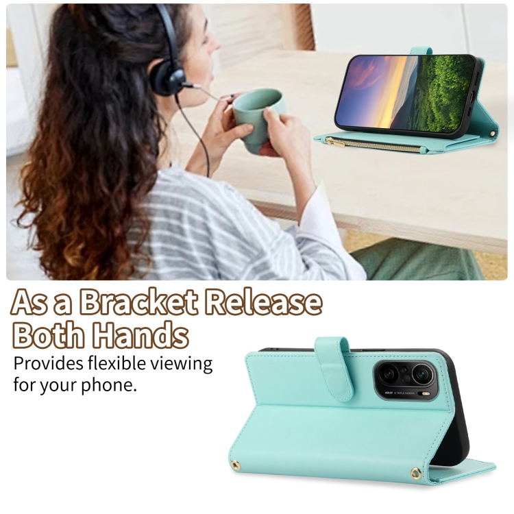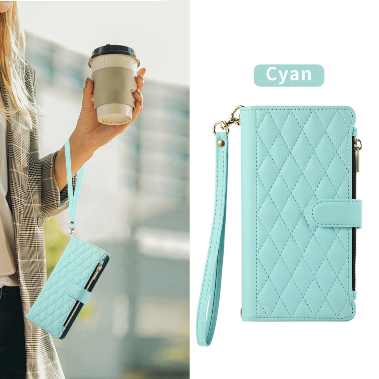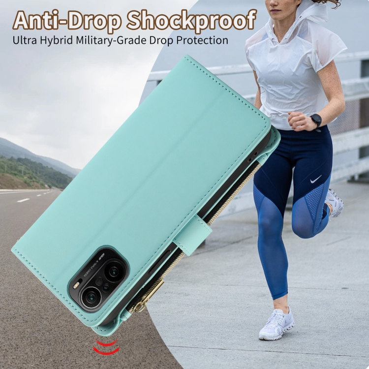 Funda de Cuero Tipo Billetera con Cremallera Rombal para Redmi K40 (Cian)