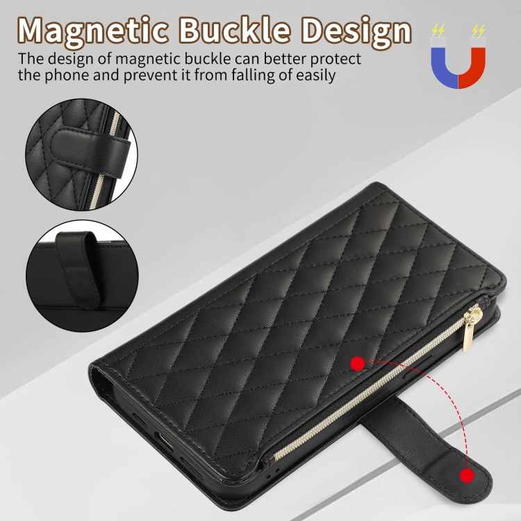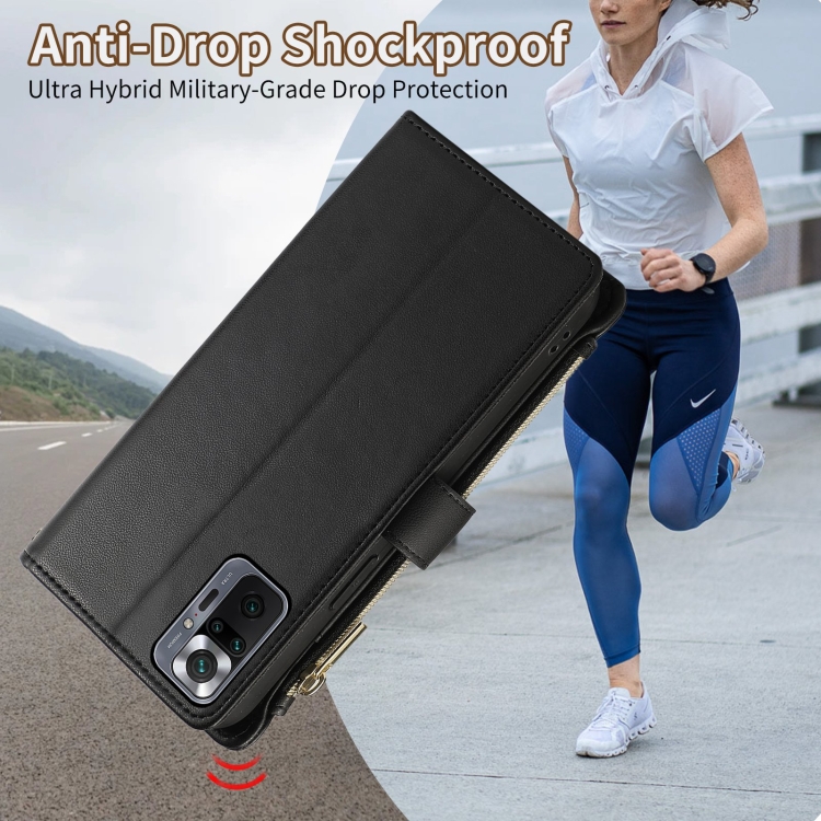 Funda de Cuero Tipo Billetera con Cremallera Rombal para Redmi Note 10 Pro/10 Pro Max (Negra)