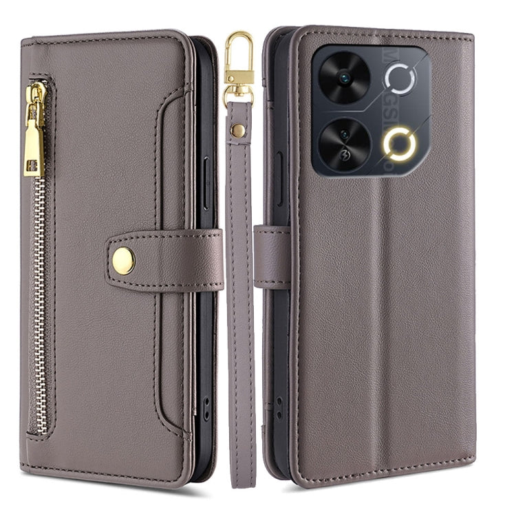 Funda de Cuero Tipo Billetera con Cremallera Diseño Cruzado Textura de Oveja para Itel P65 (Gris)