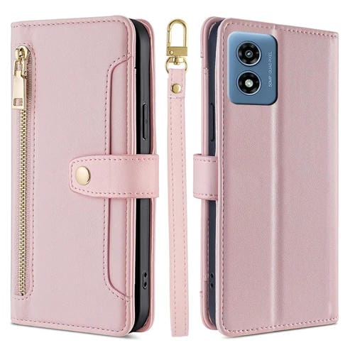 Funda de Cuero Tipo Billetera con Cremallera para Motorola Moto G 5G (2024) (Rosa)