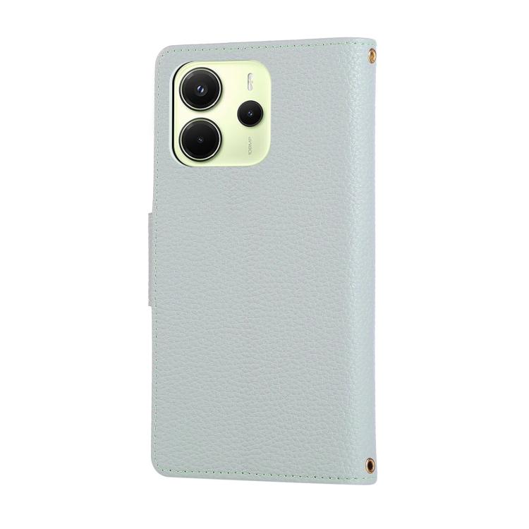 Funda de cuero tipo billetera con hebilla redonda y cremallera de 163,3 mm para Redmi Note 14 4G con correa cruzada (azul cielo)