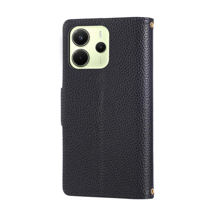 Funda de cuero tipo billetera con hebilla redonda y cremallera de 163,3 mm para Redmi Note 14 4G con correa cruzada (negra)
