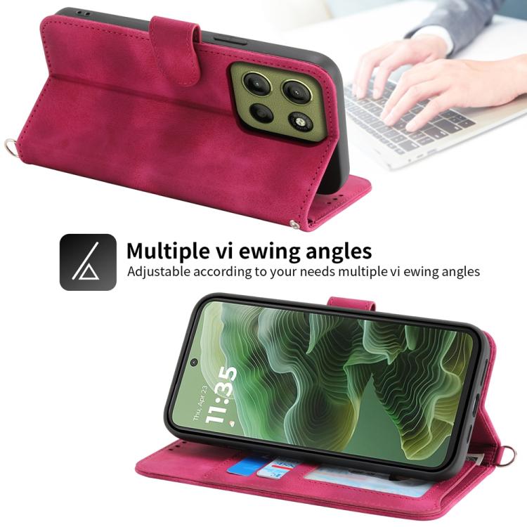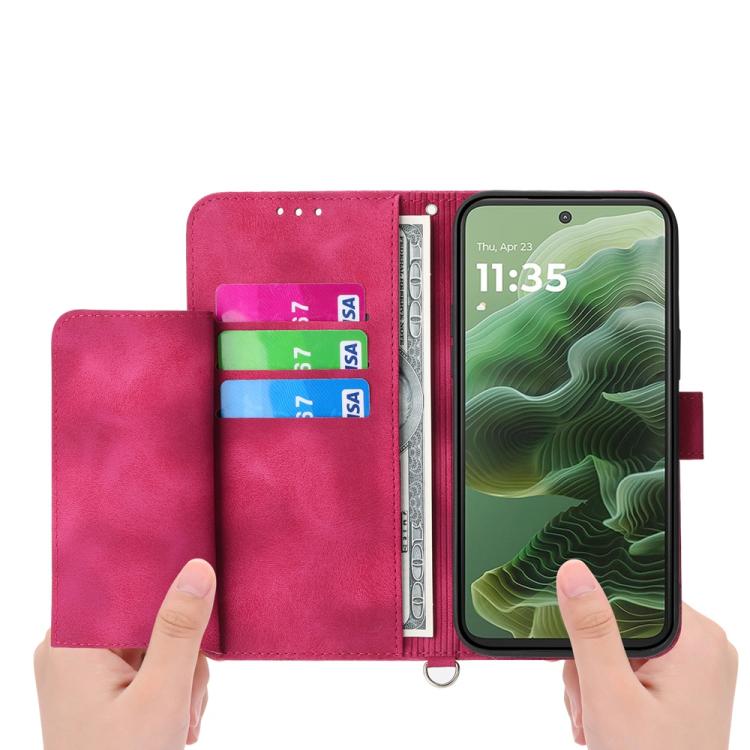 Funda de Cuero Tipo Billetera Motorola Moto G15 con Relieve de Flores (Rojo Vino)