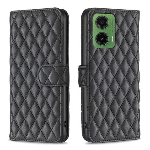 Funda de Cuero Tipo Billetera para Motorola Moto G35 con Tapa y Diseño Celosía (Negra)