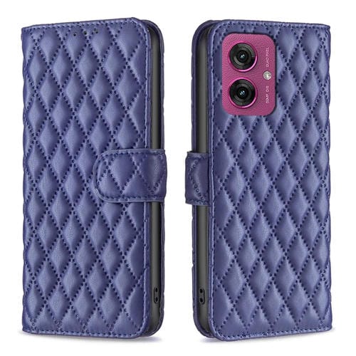 Funda de Cuero Tipo Billetera con Tapa y Diseño Celosía Diamante para Motorola Moto G55 (Azul)