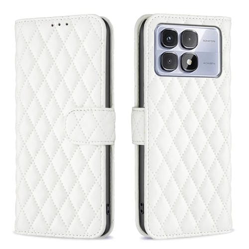 Funda de Cuero Tipo Billetera con Tapa y Diseño de Celosía En Forma de Diamante para Redmi K70 Ultra (Blanca)