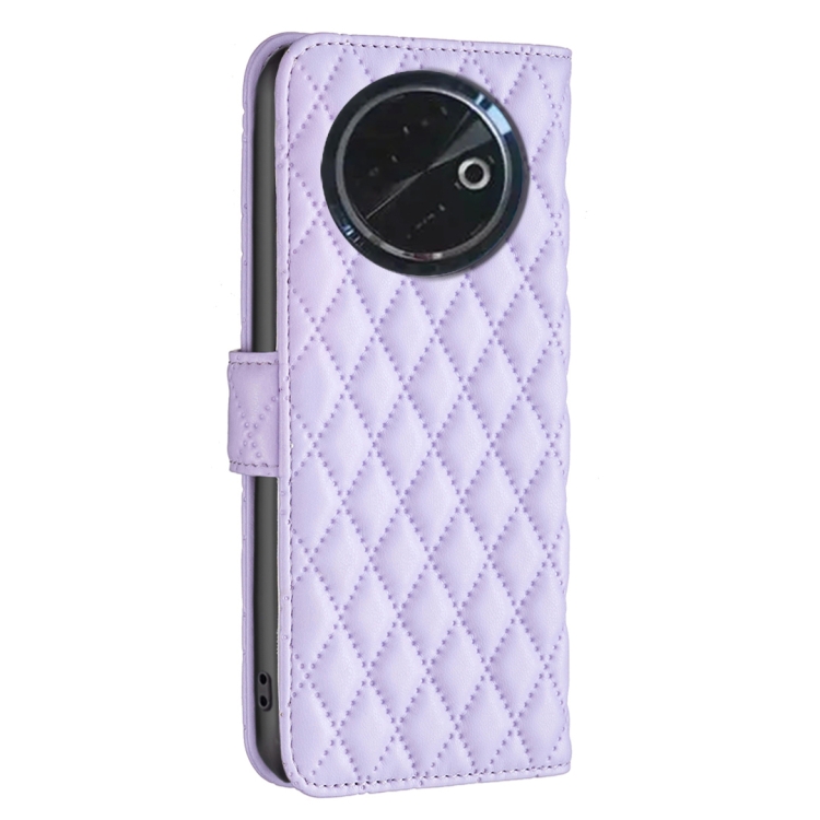Funda de Cuero Tipo Billetera para Tecno Spark 30C con Tapa y Diseño Celosía (Morado)