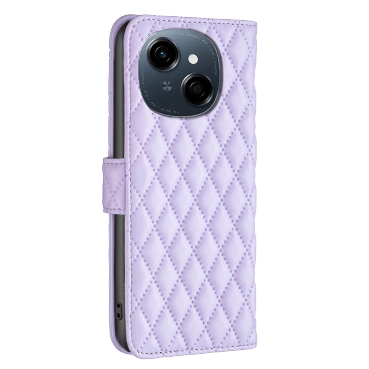 Funda de Cuero Tipo Billetera para Tecno Spark Go 1/Pop 9 con Tapa y Diseño Celosía (Morado)