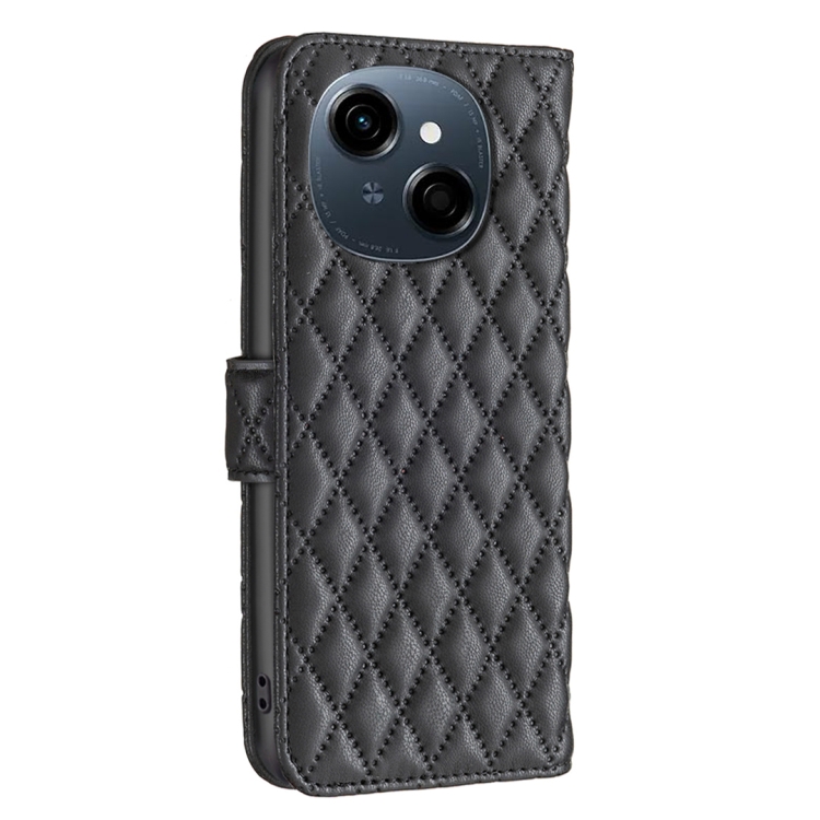 Funda de Cuero Tipo Billetera para Tecno Spark Go 1/Pop 9 con Tapa y Diseño de Celosía (Negro)