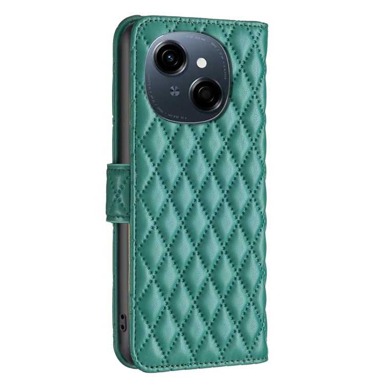 Funda de Cuero Tipo Billetera para Tecno Spark Go 1/Pop 9 con Tapa y Diseño Celosía (Verde)