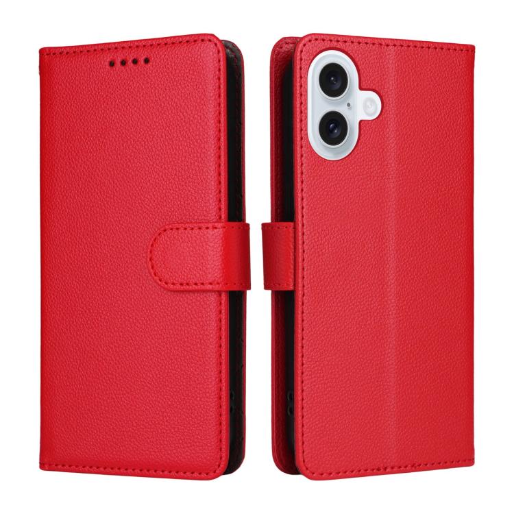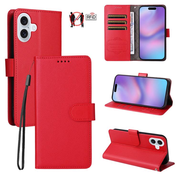 Funda de cuero tipo billetera con textura Litchi y bloqueo RFID para 3 tarjetas (roja) para iPhone 17