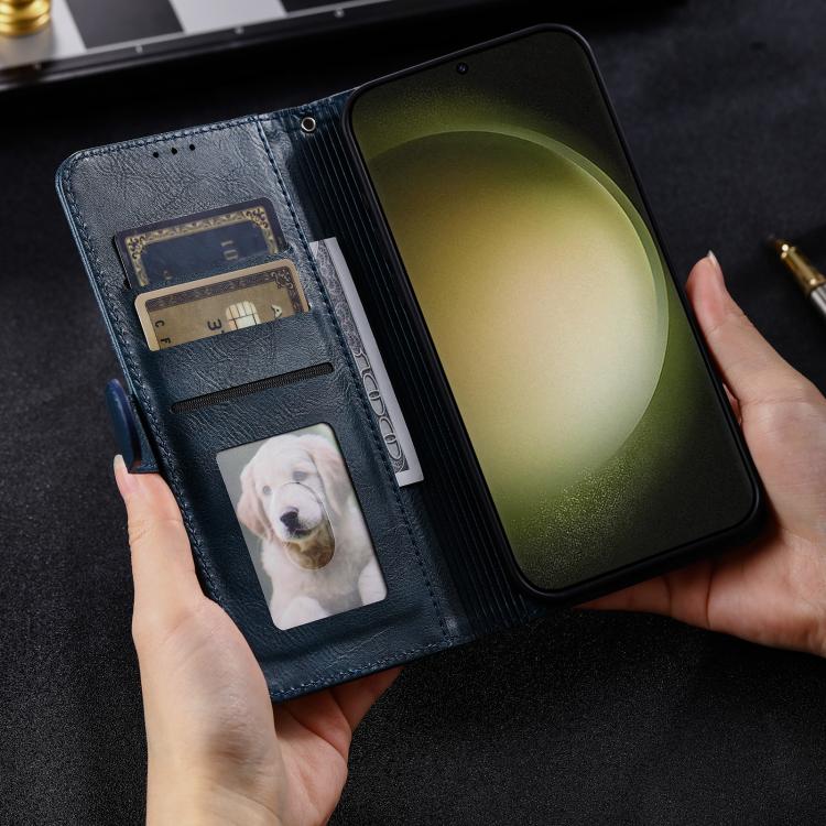 Funda de cuero tipo billetera para Samsung Galaxy A17 5G, sencilla, con capacidad para 6 tarjetas (azul marino)