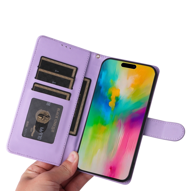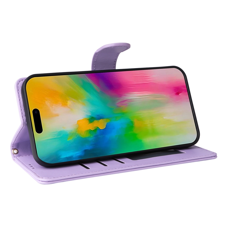 Funda Tipo Cartera Cuero Entramado Diamantes iPhone 16 (Morado Claro)