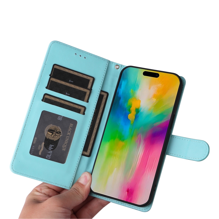 Funda tipo Cartera Cuero Entramado Diamantes iPhone 16 (Verde Menta)