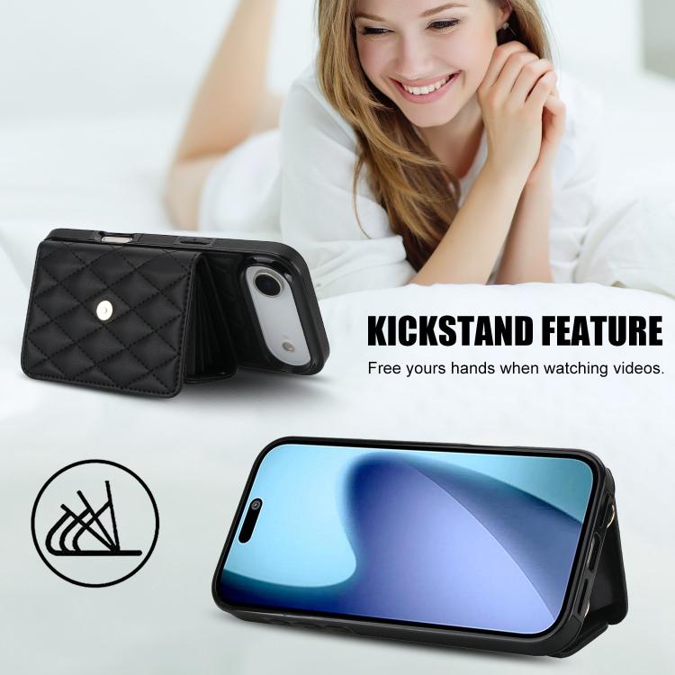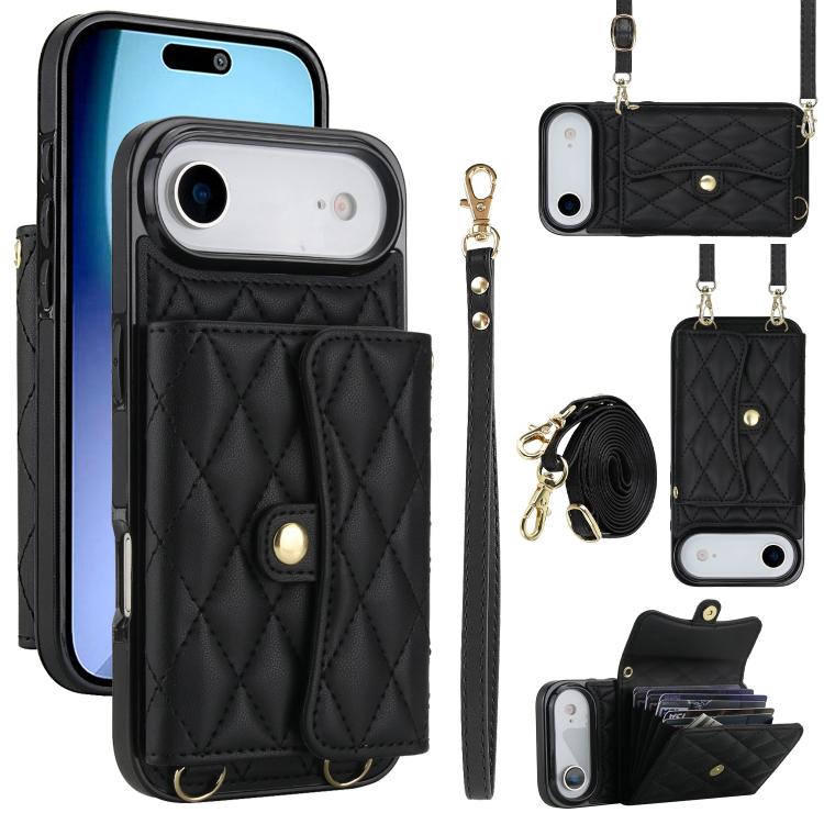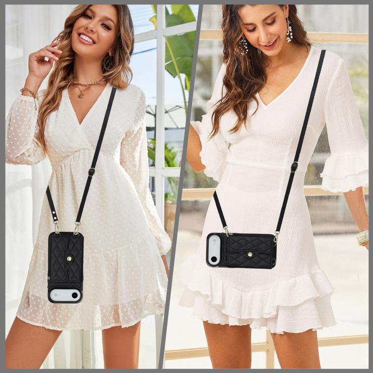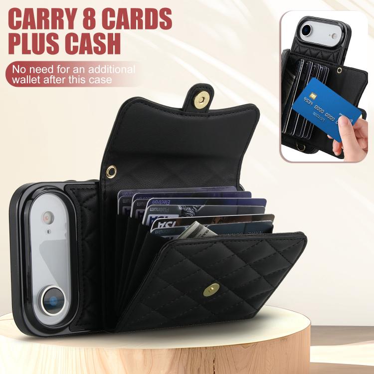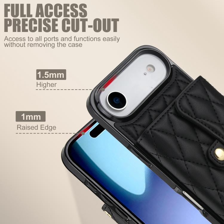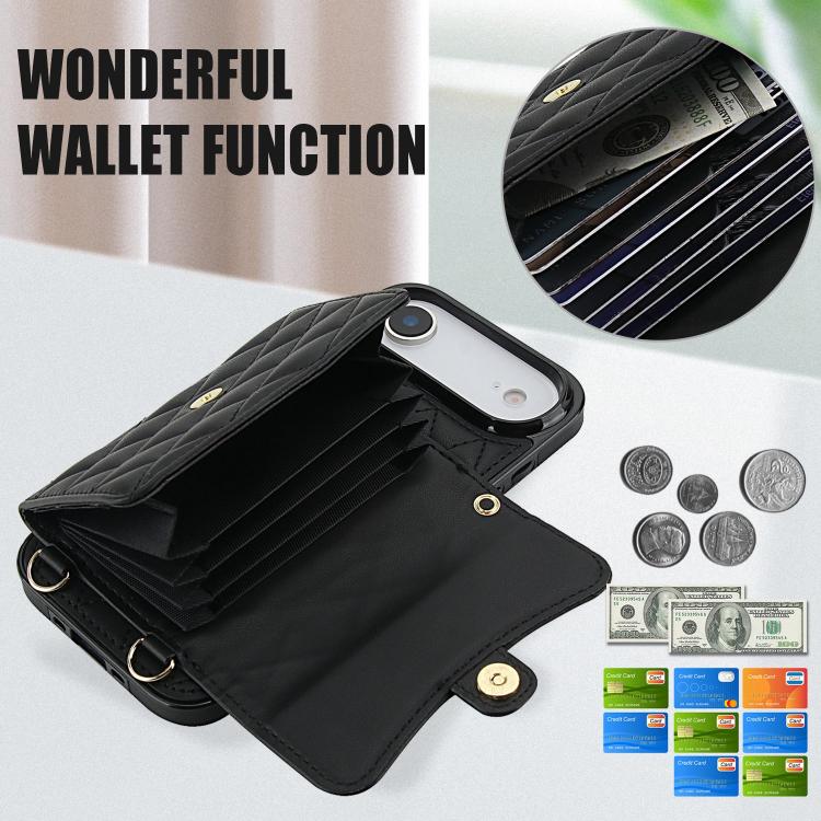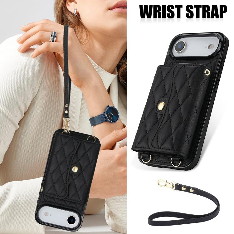 Funda de cuero tipo cartera horizontal con diseño rómbico para iPhone Air (negra)