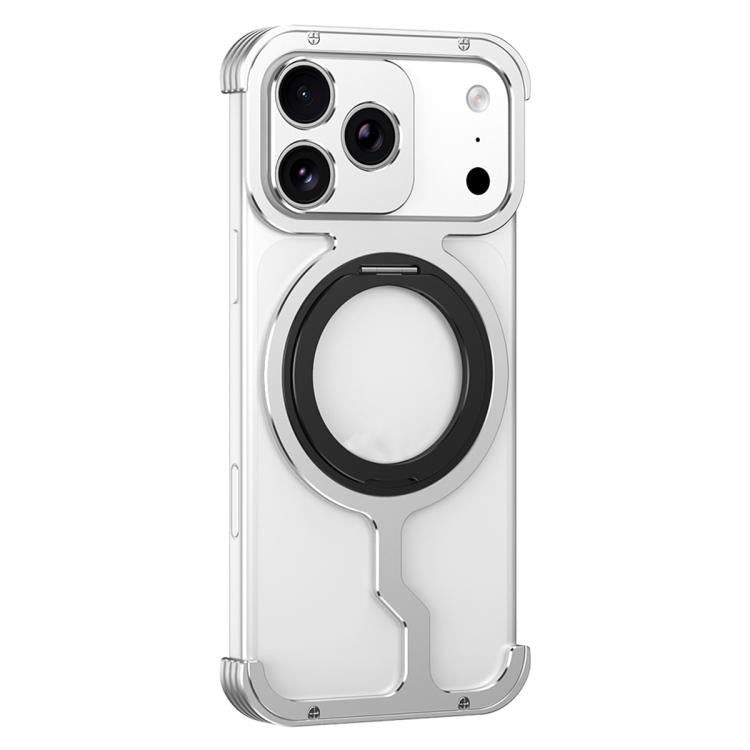 Funda de metal con disipación de calor y soporte magnético MagSafe sin marco para iPhone 17 Pro (plateada y negra)