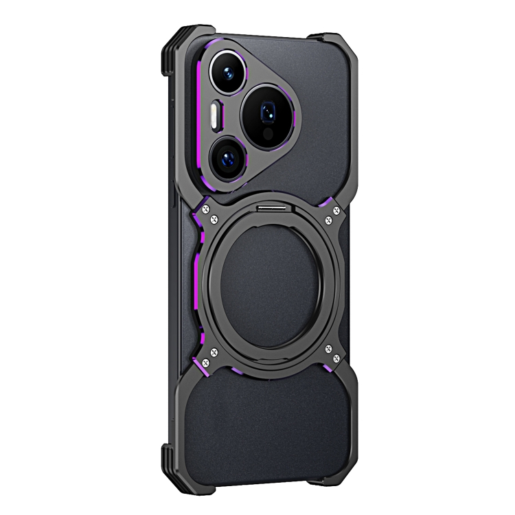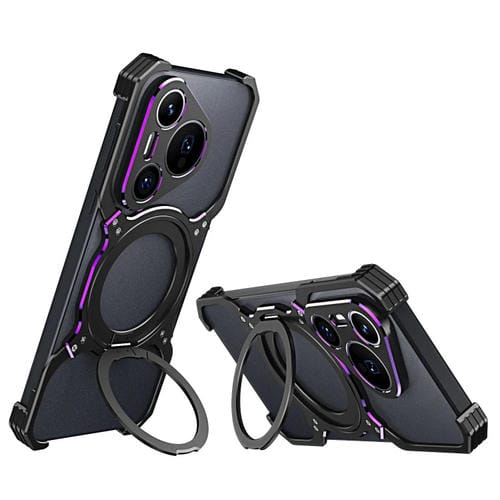 - 1x Funda de Metal con Soporte MagSafe y Brazo Mecánico para Huawei Pura 70 (Negro y Morado)