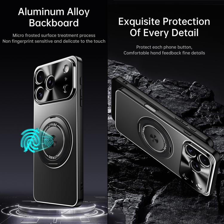 Funda de metal esmerilado con soporte giratorio para iPhone 17 Pro (negra)