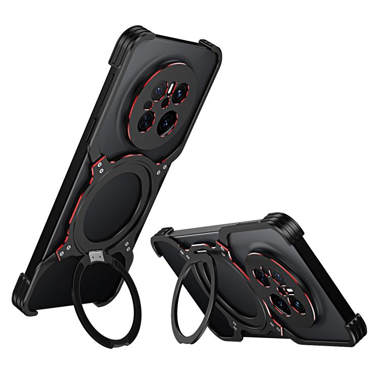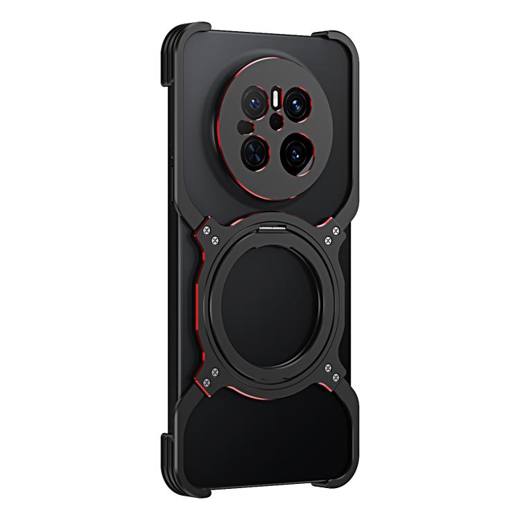 Funda de Metal para Huawei Mate 70 con Soporte Magsafe sin Bordes y Brazo Mecánico (Negro y Rojo)