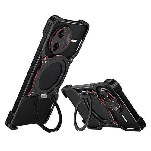 Funda de Metal para Teléfono con Soporte Magsafe sin Bordes y Brazo Mecánico para Redmi K80 Pro (Negro y Rojo)