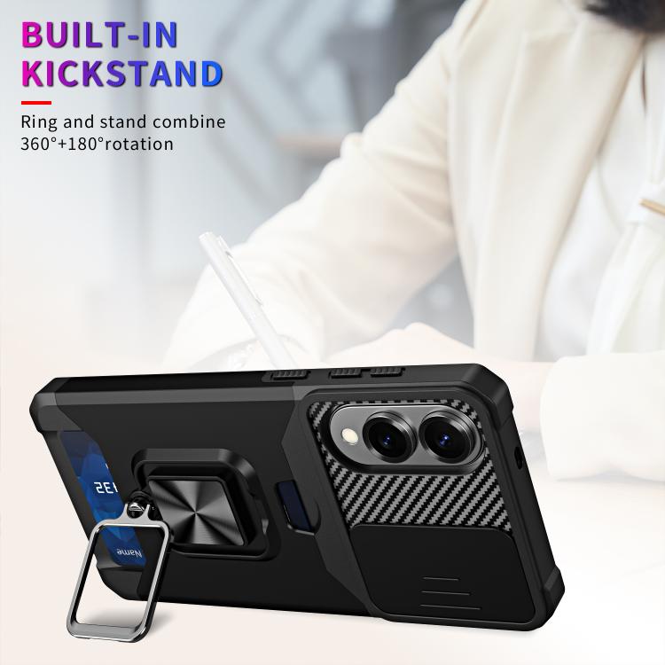 Funda de PC y TPU para Samsung Galaxy S25 Edge 5G con ranura para tarjeta y protector de cámara (oro rosa)