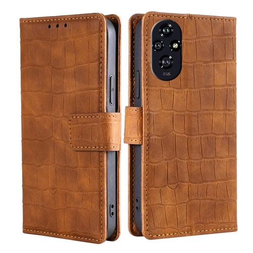 Funda de Piel con Cierre Magnético para Honor 200 5G (Marrón) Diseño de Cocodrilo