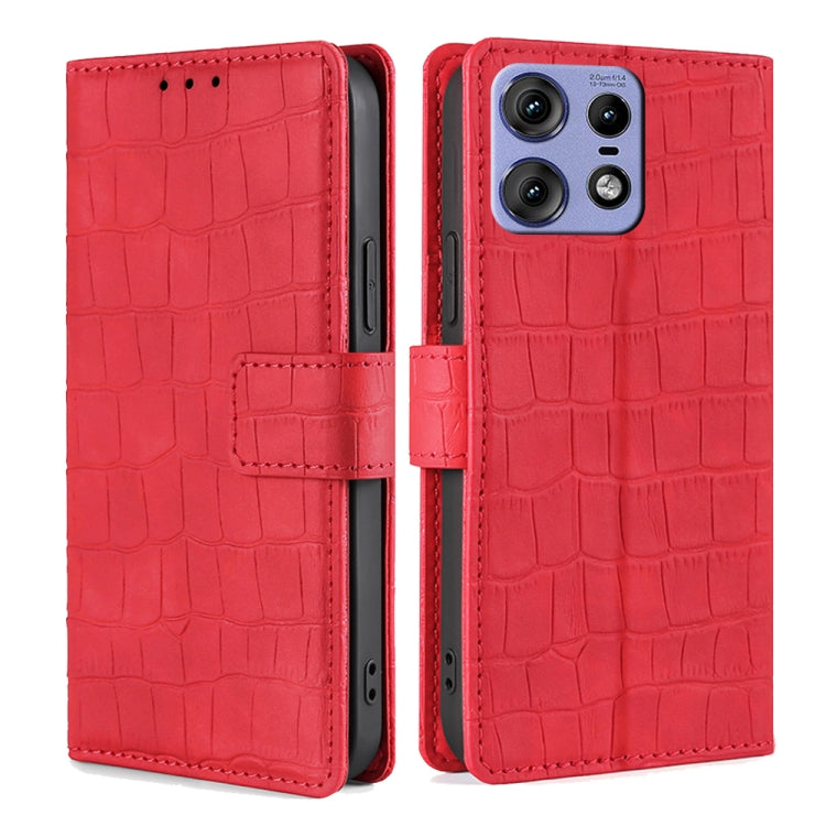 Funda de Piel con Cierre Magnético y Diseño de Cocodrilo para Motorola Edge 50 Pro 5G (Rojo)