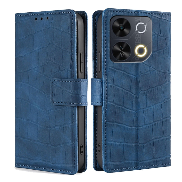 Funda de Piel con Cierre Magnético para Teléfono Itel P65 (Azul) Tacto Cocodrilo