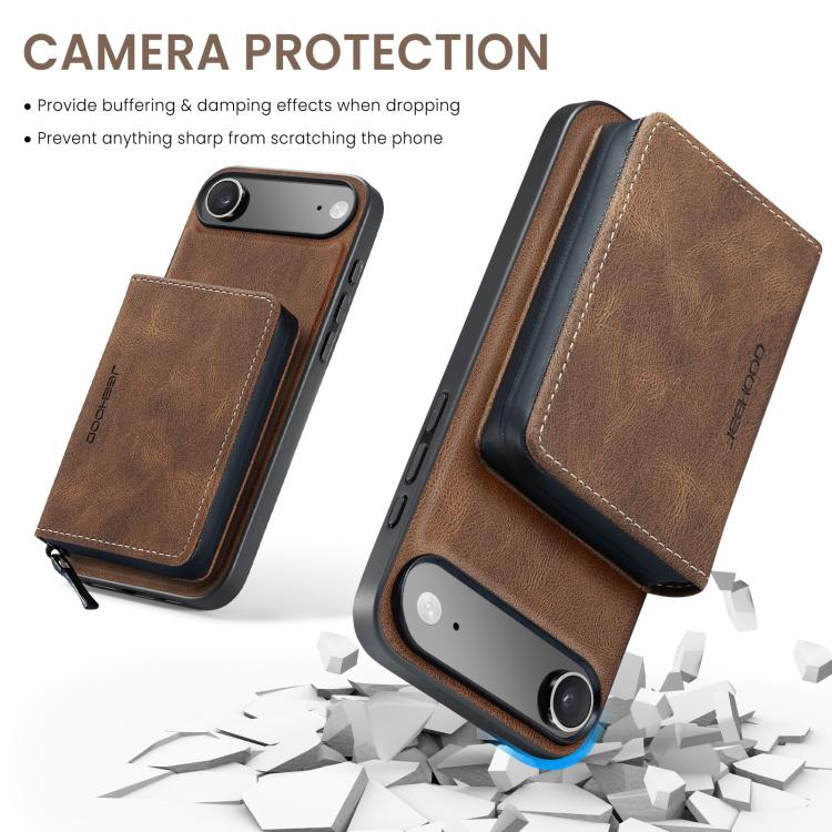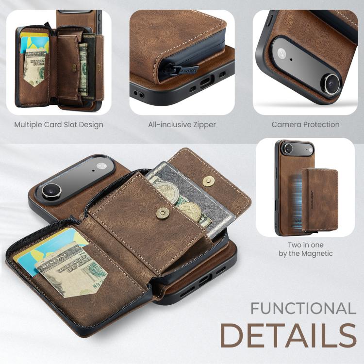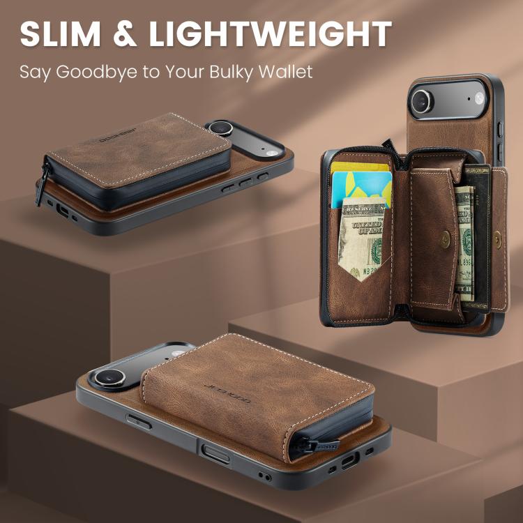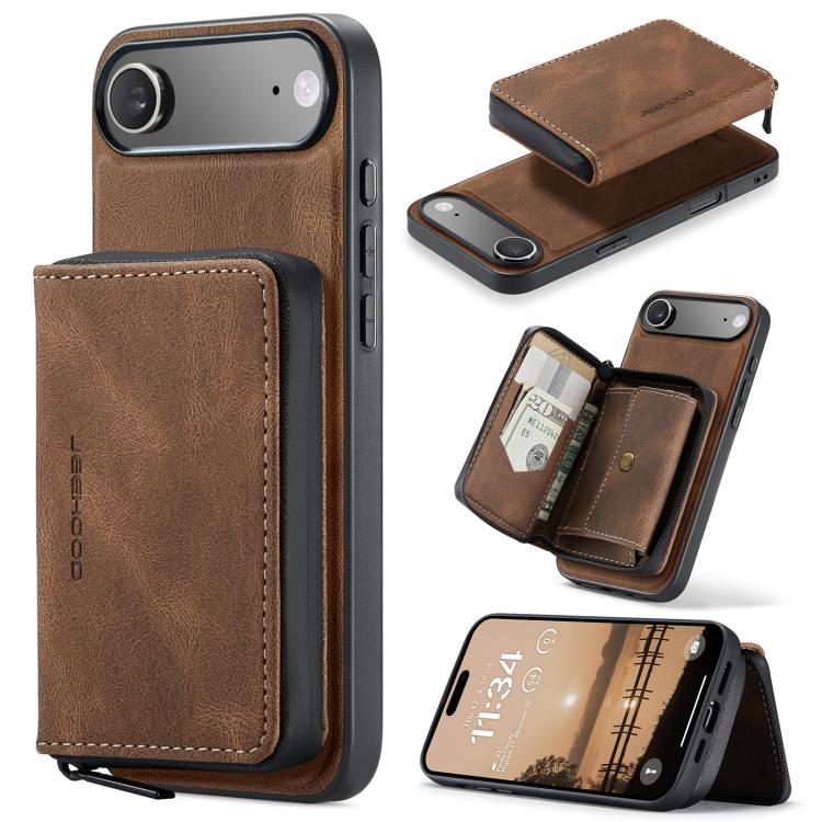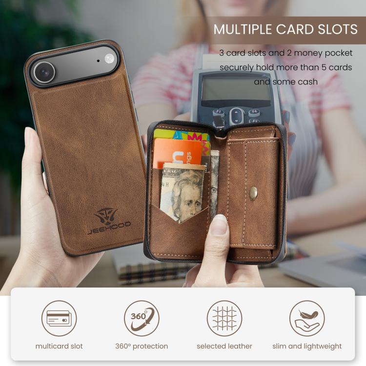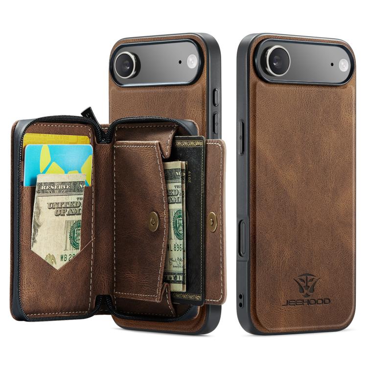 Funda de piel con cremallera magnética JEEHOOD J02 para iPhone Air, tipo libro horizontal (marrón)
