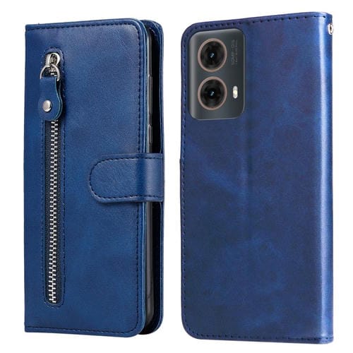 Funda de Piel con Cremallera y Textura de Becerro para Motorola Moto G85/S50 Neo (Azul)